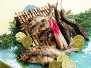 鮎塩焼き その日釣れた活き鮎をじっくり焼いていきます。香り、味、ほろ苦さ、塩焼こそ天然鮎のすべてが凝縮しています。 (大きさによって価格が変わります。) |