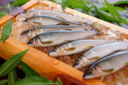 鮎姿寿し その日に釣れた活きのいい鮎を選別し、丁寧に鱗を取り、ゆず酢で〆た当店自慢の逸品。 |